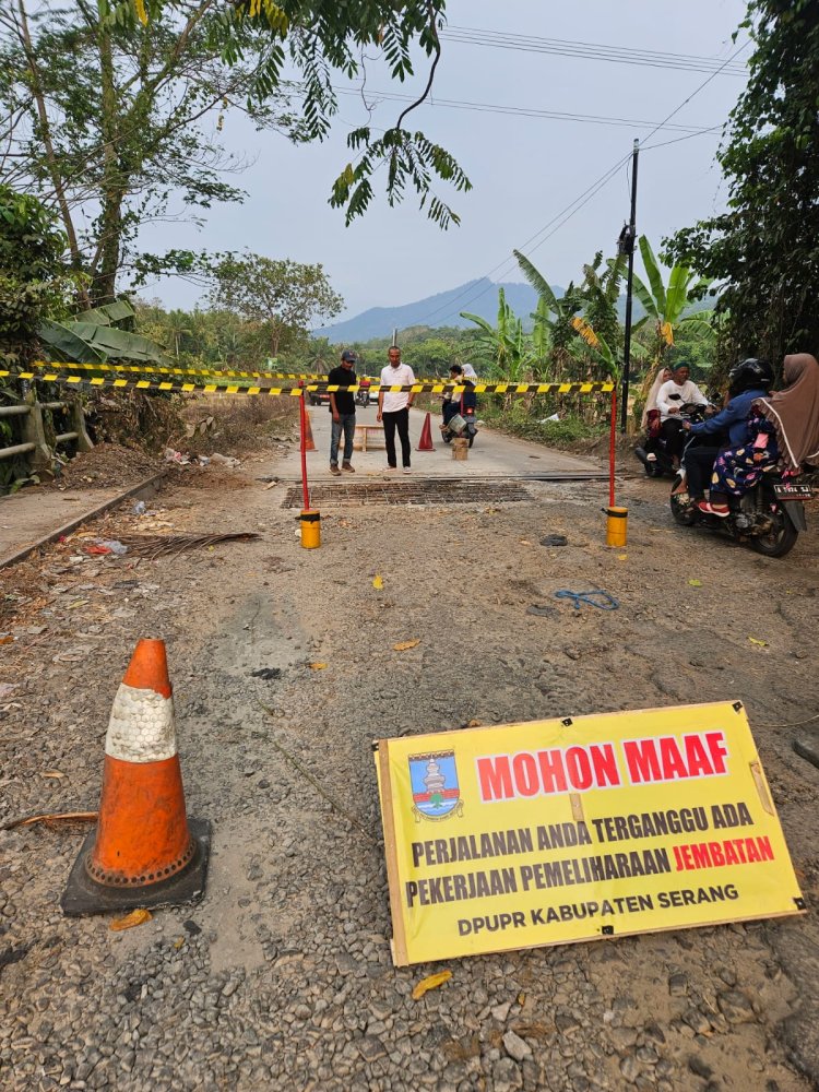Jembatan Alternatif menghubungkan Desa Tambang Ayam & Desa Sindang Karya Kec Anyar sedang diperbaiki